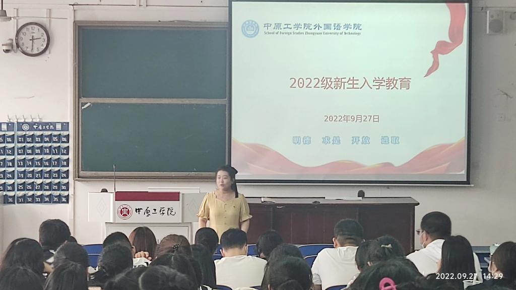 9月27日下午,太阳集团tyc59972022级新生入学教育会在3号教学楼110教室召开,学院党委副书记常潞炜、学生工作办公室主任葛士阳、团委书记刘爽及2022级学生参加会议。